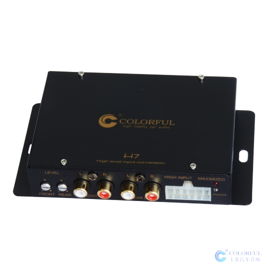 為此.卡萊電子憑著其雄厚的技術開發力量,本著對高保真音響的執著追求,針對性地研發了汽車音響改裝行業所需要的H7高保真汽車音響專業音頻轉換器(高轉低).該音頻轉換器采用優質電子元件,科學的電路設計,加上卡萊電子資深音響工程師的悉心調制而成.經其處理后輸出的信號動態范圍寬廣、失真小、高中低頻平衡,這是高保真音響系統所追求的理想信號源. 為了安裝人員的方便,本轉換器還具備獨有的控制前\后方聲道輸出信號電平的電位器械及控制功放開關機的電壓輸出(REM)功能,控制功放無須再從主機連接觸發開關線.