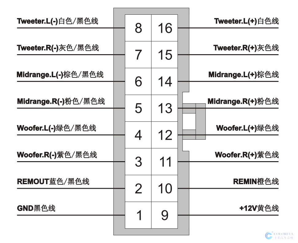 注:為了安裝人員的方便,本轉換器還具備獨有的控制輸出信號電平的電位器及控制功放開關機的電壓輸出(REM)功能,控制功放無須再從主機連接觸發開關線。