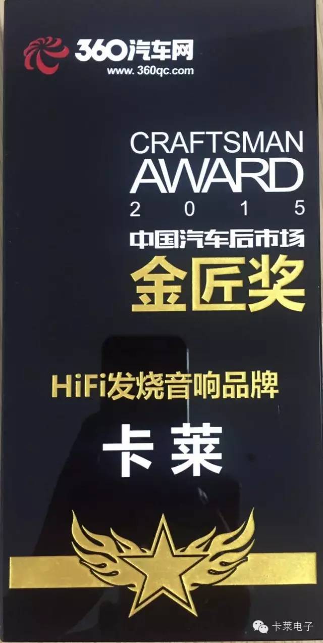努力總有收獲!一個“匠”字涵蓋了所有辛苦。信念很重要,對!卡萊團隊就是匠人之所聚集的團隊!卡萊電子科技旗下品牌“維爾帝”在此次盛會中斬獲“2015中國汽車后市場金匠獎-熱銷汽車音響品牌”,卡萊電子科技也成為“2015中國汽車后市場金匠獎-Hifi”發燒音響品牌。