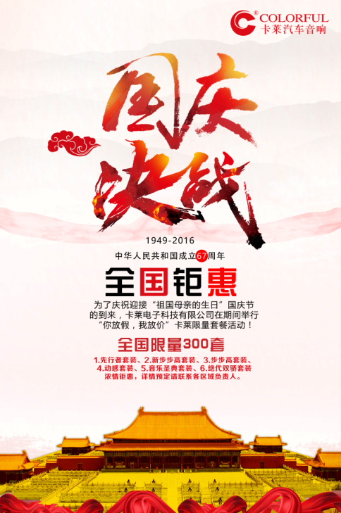 為了慶祝迎接“祖國母親的生日”國慶節的到來,卡萊電子科技有限公司在期間舉行“你放假,我放價”卡萊限量套餐活動!